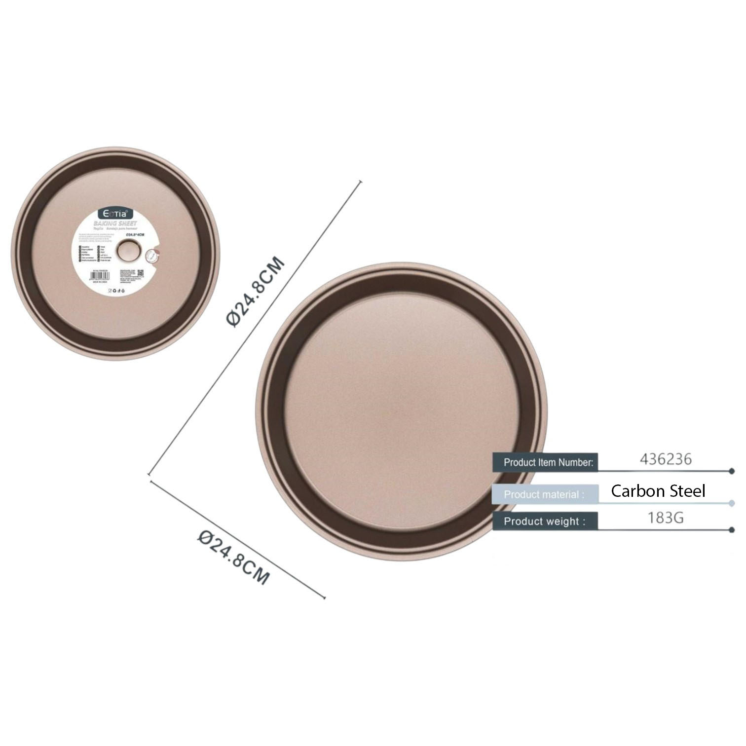 Set 2 Teglie Rotonde bordo Alto e bordo svasato, da Forno Antiaderente, Acciaio al Carbonio D. 24,8 x 3 cm H e 24,8 x 4 cm H